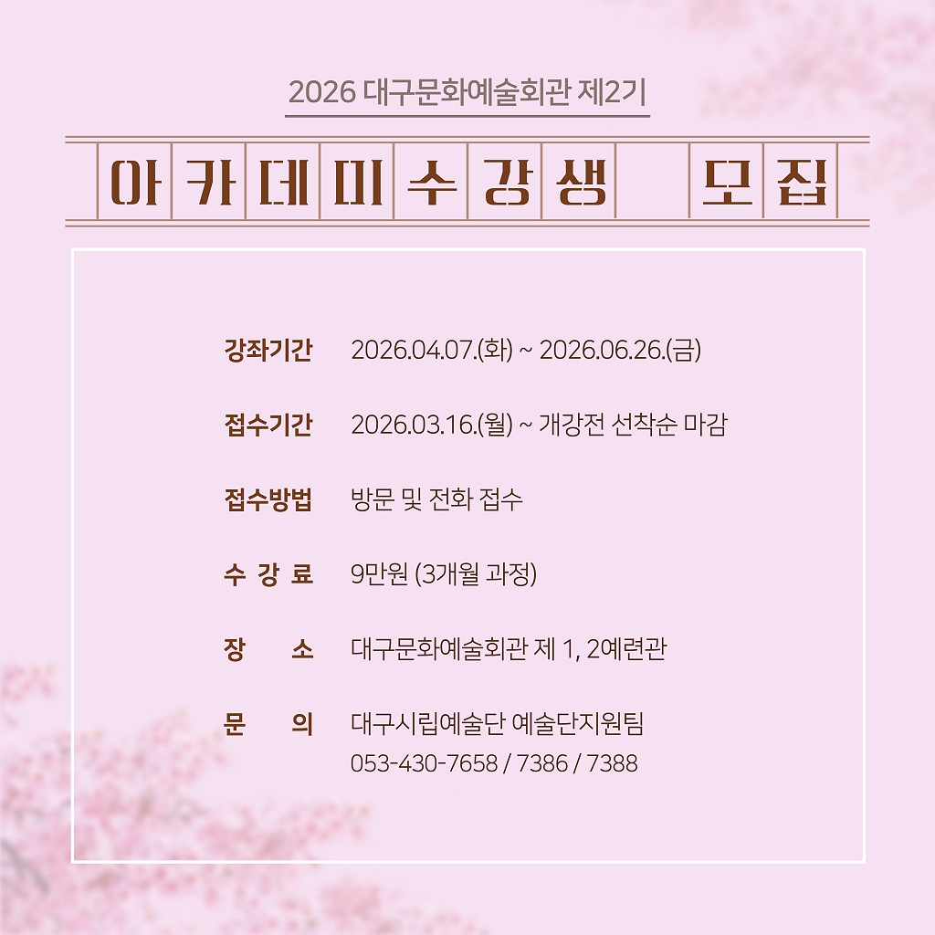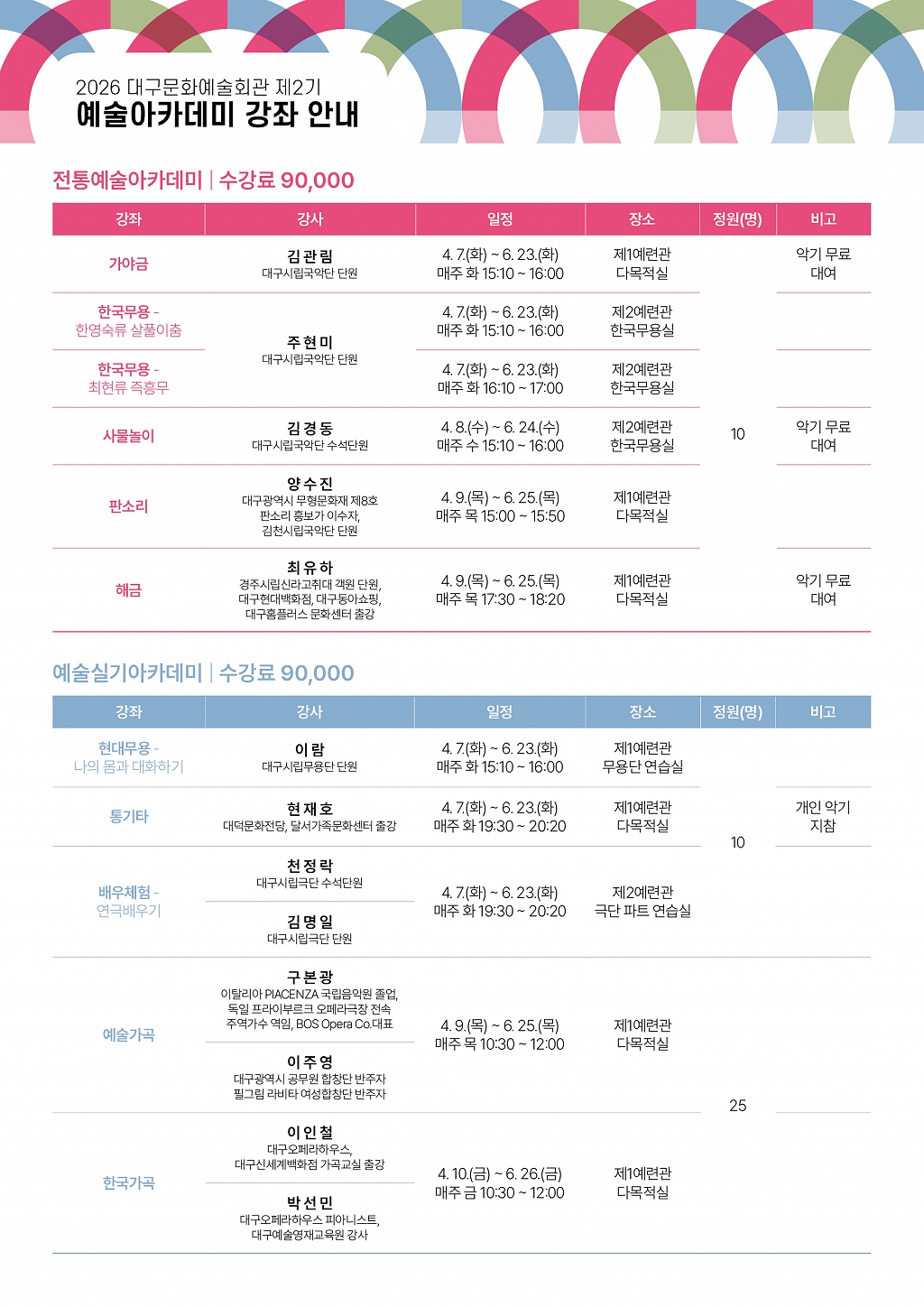 >> 2026년 대구문화예술회관 제2기 예술아카데미 수강생 모집 <<